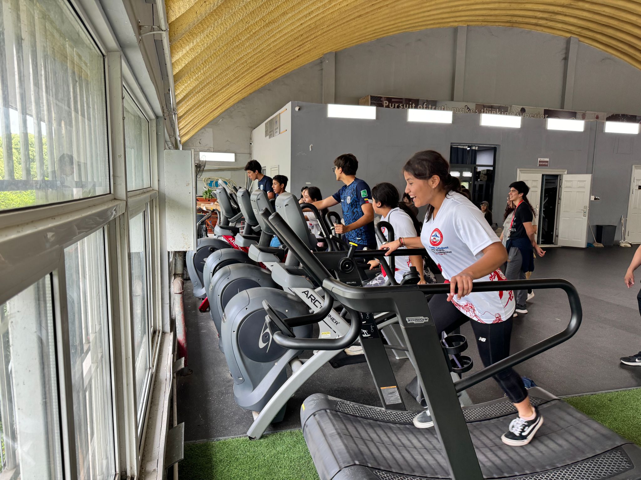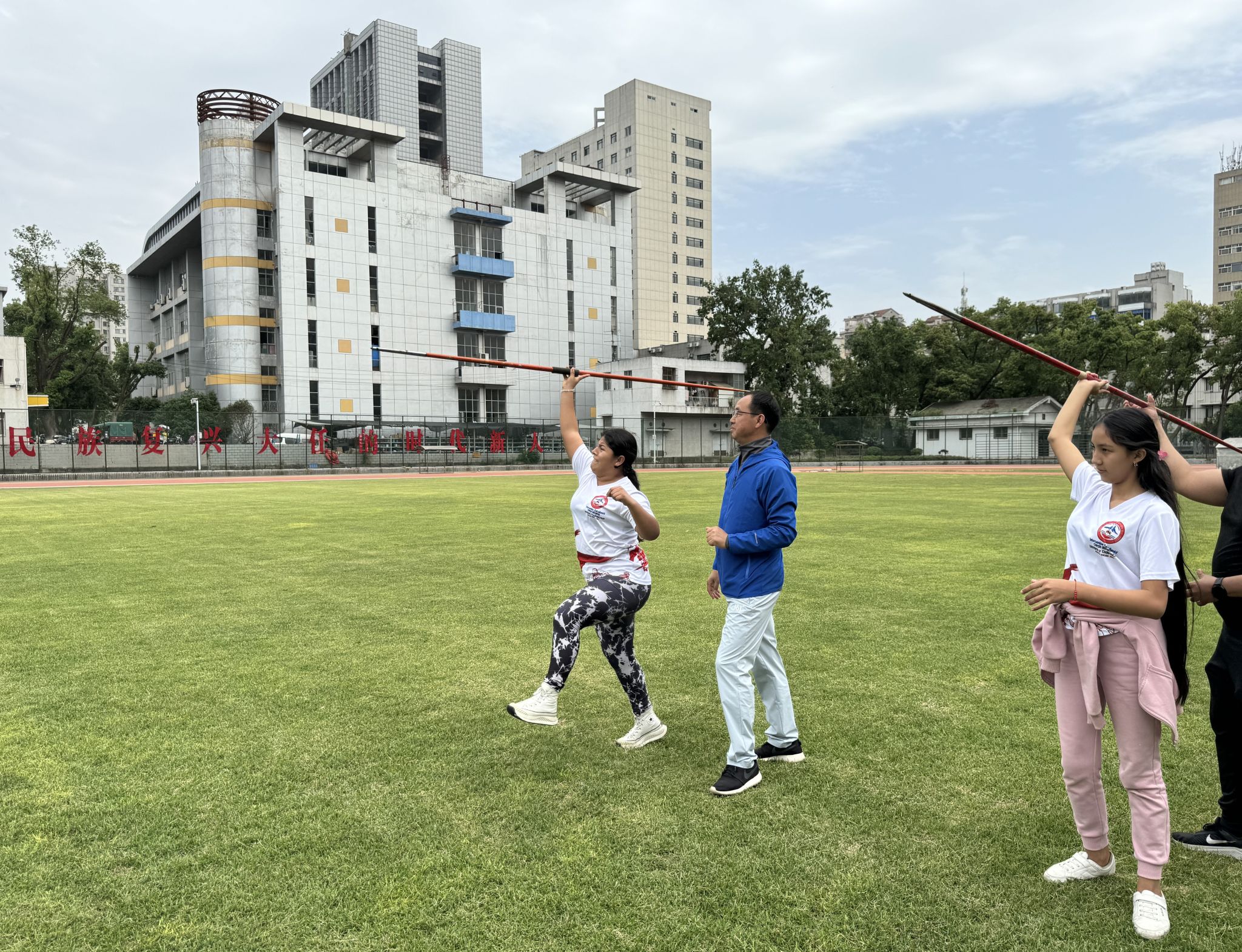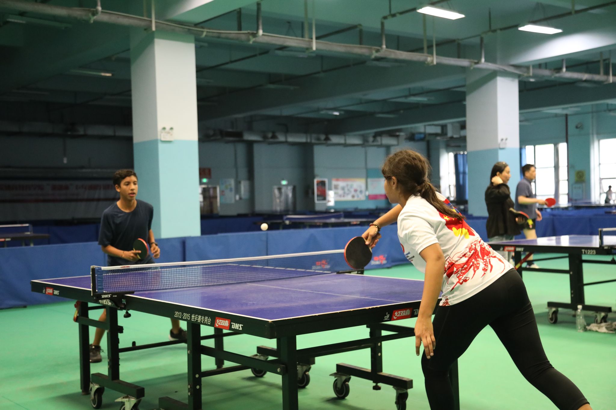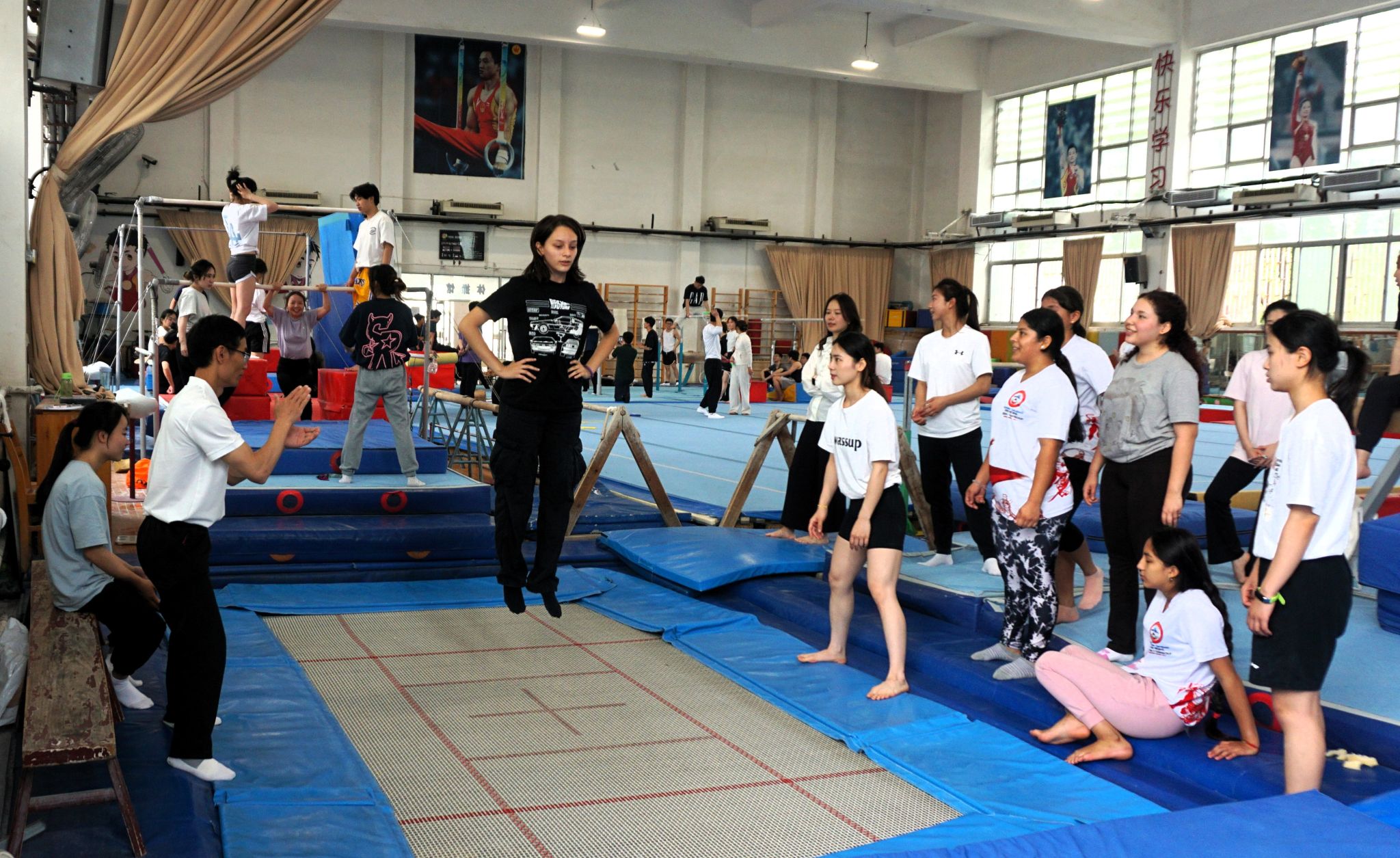 厄瓜多尔青年学生代表团观摩了教学训练场馆,在师生教练员的指导下学习体验了体操、田径、体能与乒乓球等相关专业课程。
