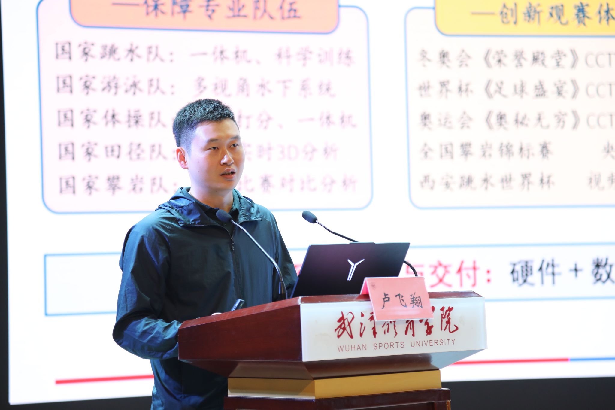 报告中,卢飞翔以AI为核心驱动,结合体育的需求场景,通过复杂场景的多目标识别与跟踪技术,向师生展示了“云-边-端”一体的软硬件系统,让体育场景看得清、看得准、看得全、看得懂,实现了“采集金牌数据,打造冠军模型”。