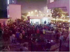 2015年11月4日晚,武汉体育学院14号公寓楼内,一名盗窃嫌疑人在偷盗多起后被守候多日的保卫处人员抓获归案。听闻此消息,部分学生聚集在学校西门口围观,各种传言和照片视频迅速在网上传播,引起了社会关注。武体新闻中心记者通过对各方当事人的采访,详细了解到事件发生的经过。