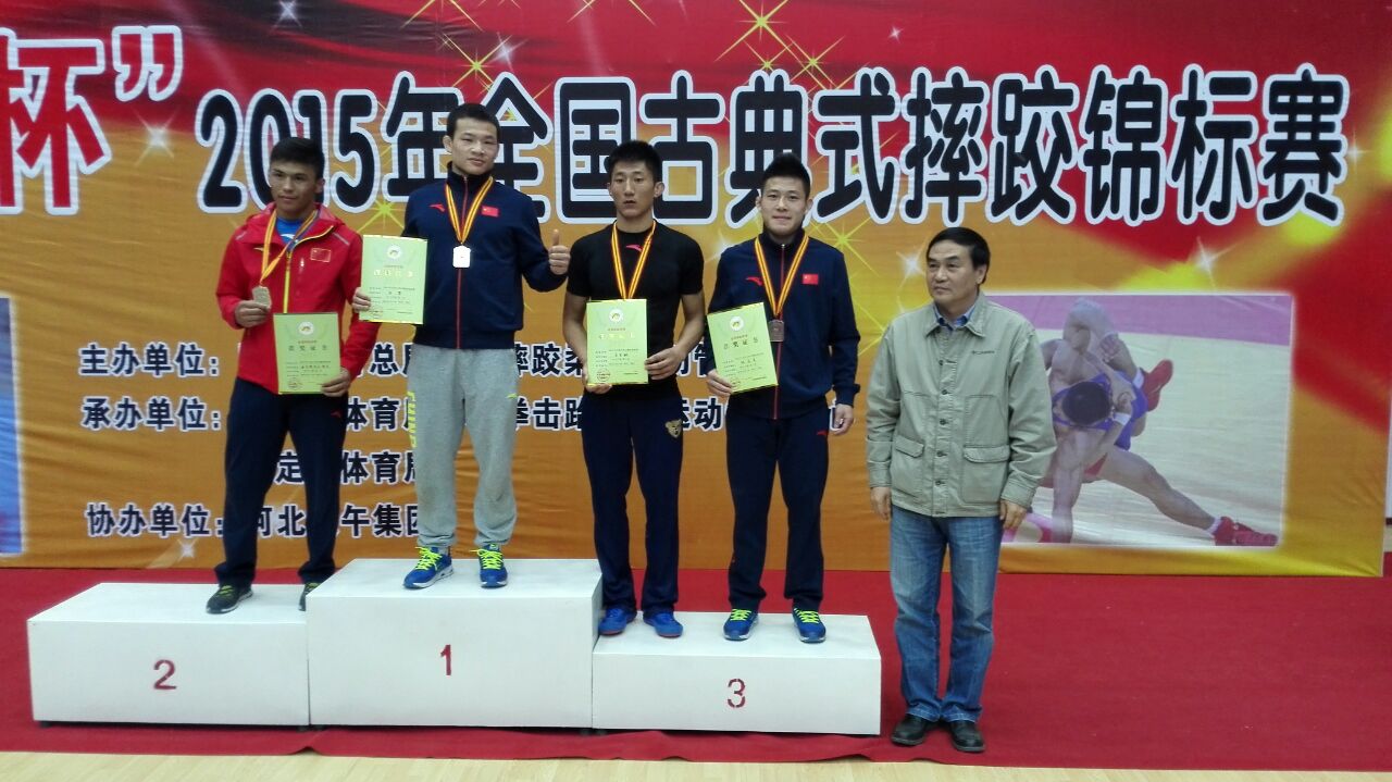 4月16日,在河北省徐水县举行的2015年全国古典式摔跤锦标赛66公斤级决赛比赛中,我校竞技体育学院古典摔跤教练兼运动员郑攀代表湖北省参加比赛,以比分8:0战胜新疆代表队道列提别克·格买,一举夺冠。
