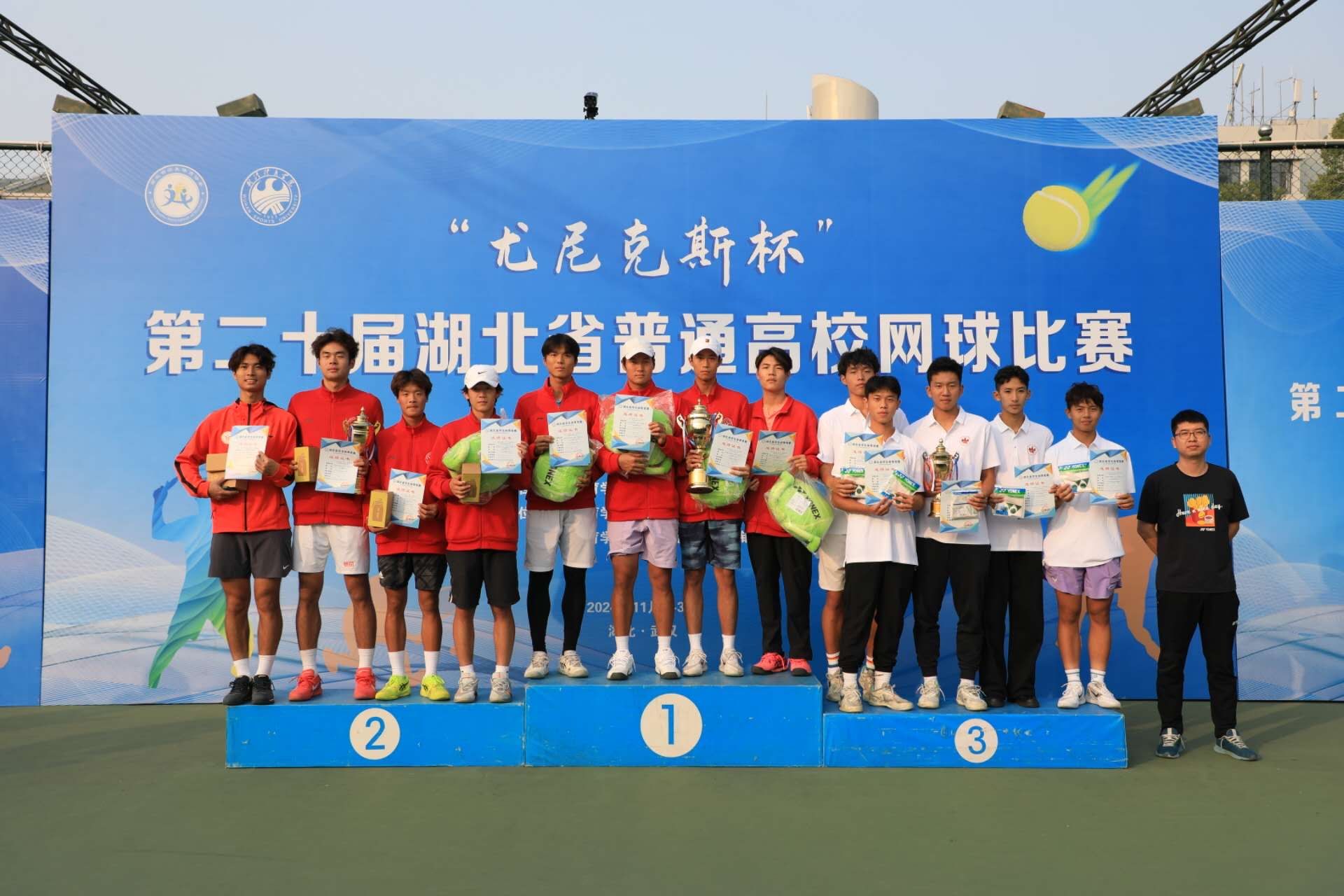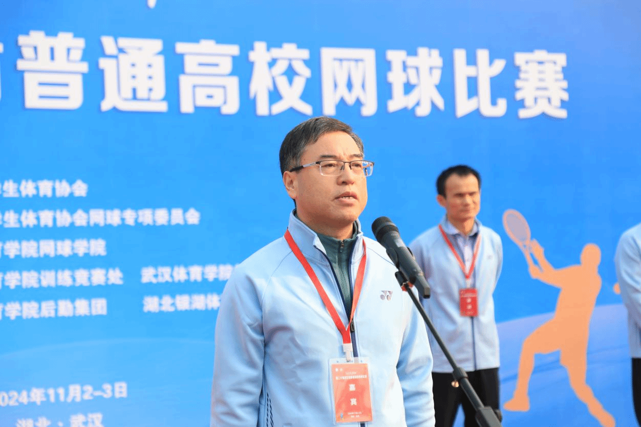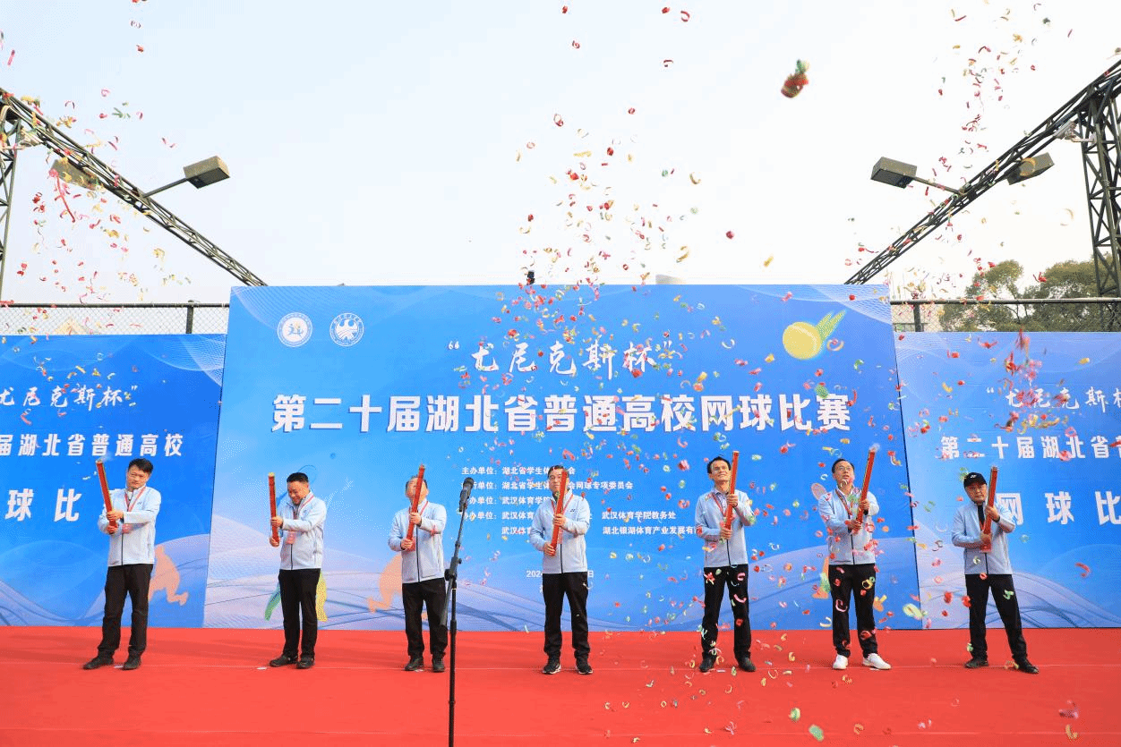 湖北省学生体育协会副理事长、校党委常委、副院长刘彦博,湖北省教育厅体卫艺处副处长缪胜杰,湖北省学生体育协会秘书长、武汉理工大学体育学院院长阳艺武,中国学生体育联合会理事、校训练竞赛处处长张豪杰,湖北省学生体育协会网球专项委员会主任、网球学院院长柯勇,尤尼克斯(上海)体育用品有限公司、武汉市潇潇商贸有限公司总经理赵广丰等参加开幕式。