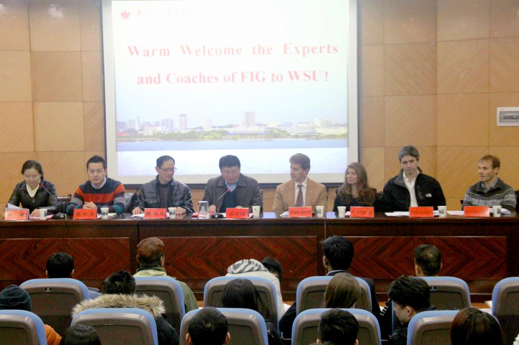 在仪式上武汉体育学院校长、国际体操学院院长吕万刚教授发表致辞。吕校长对各位远道而来的体操专家及教练员表示了热烈的欢迎,介绍了我校体操专业开办以来付出的努力及取得的成果,并表示武汉体育学院愿意为世界体操运动的开展做更多的工作。中国体操协会副秘书长张红亮表示,此次机会来之不易,对国外学员能来中国参加此次培训感到欣慰,希望各位学员认真学习,积极交流,充实并快乐的度过这段培训时光。