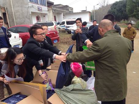 活动现场,武汉体育学院驻村工作队员和武汉东峻汽车销售服务有限公司代表把27950元的善款和115件衣服送到方岗村64个贫困户的家中。同时,还给他们分发了价值18000元的过冬物资。为他们送去学校的关怀、传递社会的温暖,让困难群众度过一个温暖的冬季。